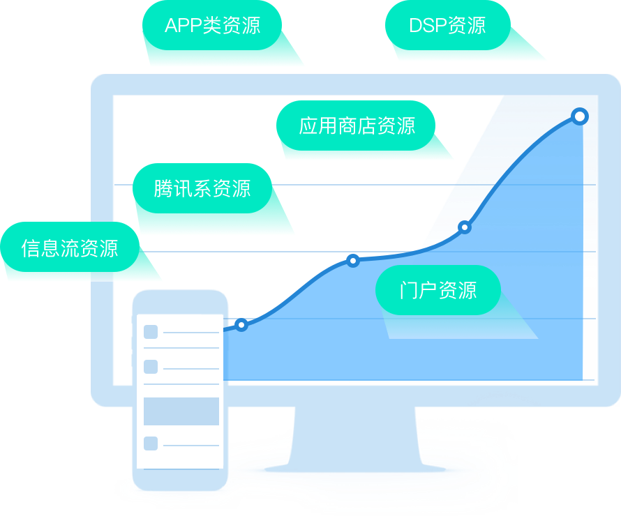 品牌广告业务拥有大量优质媒体资源,基于大数据分析理论,为广告提供投放前期目标人群的定位分析,借助各优质媒体资源,将有效的品牌信息一站式传递至目标受众,提升品牌广告投放效果。媒体资源包含信息流资源、DSP资源、APP类资源、应用商店资源、门户资源及腾讯系资源等。
